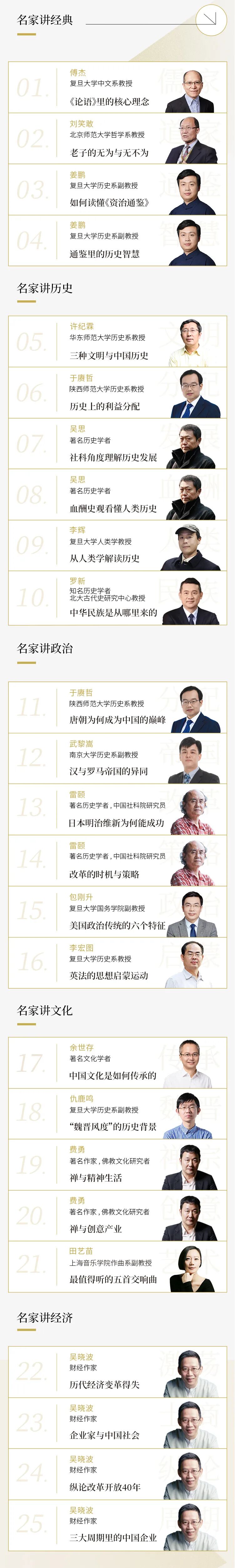 吴晓波老师是思想食堂的发起人,本专栏包含吴老师的四门课:《历代经济变革得失》《企业家与中国社会》《纵论改革开放40年》《三大周期里的中国企业》。