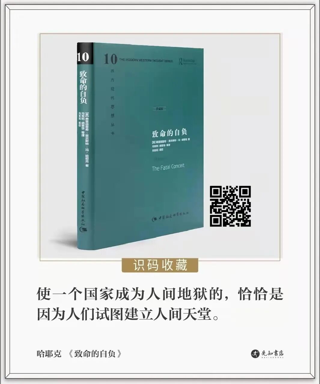 所需要的是“传统的创造性转化”。这个创造性,和制度与技术的创新一样,蕴涵于无数文化实践者的创新努力,取决于大众拥有的创新自由。而这一切都离不开哈耶克的所提倡的理念。为此,先知书店强力推荐“读懂哈耶克作品集”,多一个人读哈耶克,自由就多一份保障。“最接近诺贝尔奖”的华人经济学家杨小凯这样评价哈耶克的思想:“我读了哈耶克的著作后,有一种强烈的相见恨晚、非常欣赏的感觉。哈耶克对人类思想的影响可能会与孔子思想对中国人的思想的影响一样深远和无孔不入”。 作为一位深刻影响了,而且仍将影响人类思想及历史进程的思想家,哈耶克的作品,早已走出学术的象牙塔,成为所有热爱自由,忧思人类命运人士的案头必备书。然而,哈耶克的作品,犹如他当年的命运一样多舛。先知书店经多方努力,为书友奉上目前中文版最全的读懂哈耶克作品集(含独家)。感兴趣的书友可识别下图二维码,一键收藏。来源 | 部分图片来自网络,内容选编汪丁丁《资本主义的实质是什么》。感谢原作者,版权为原作者所有。如有侵权,请联系我们删除。