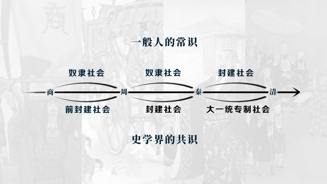 然而,这是对“封建社会”的严重误解。事实上,“封建”从词义上,是反压迫、反专制的,与大一统的秦制相比,真正的封建社会,是一个“权力相对分散,且竞争常态化,并蕴含着现代共和因子的社会”。不过,这一误解之所以存在,还不是我们对“封建”的批判出了问题,而是阴差阳错的搞错了对象,错把秦制以来的社会当成了封建社会。然而,中国真正的封建社会,正如学术大家瞿同祖《中国封建社会》一书所阐释的,对应的是先秦——它兴起于殷末,完成于周朝,而在秦始皇统一六国后彻底瓦解。遗憾的是,却长时间被当作“奴隶社会”而被大众广泛接受。总之,印象深刻的“奴隶社会”,其实对应的是学界常识的封建社会;而我们常常提到的封建社会,其实是“大一统的秦制社会”。