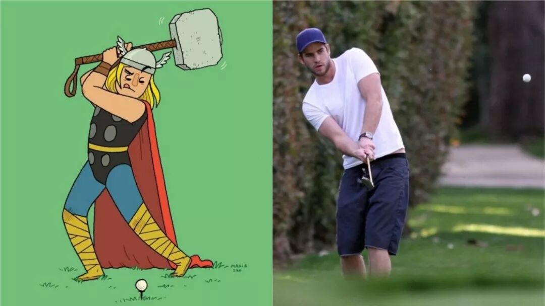 这位帅哥同样热衷高尔夫。手中的雷神之锤换成球杆同样有型。只可惜,2017年,他在练习场打了一记“相克”之后,就此宣布“退出高坛”……