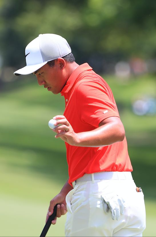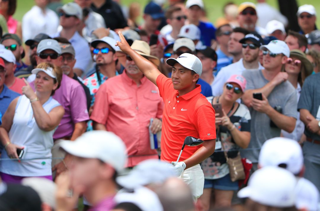 这个周日的大部分时间里,潘政琮都循环往复着同一个模式:开出一个很棒的球,看着它跳进球道旁的长草里,然后努力思索怎样保平标准杆。而这一天,本该是他努力朝前、冲击冠军的日子。