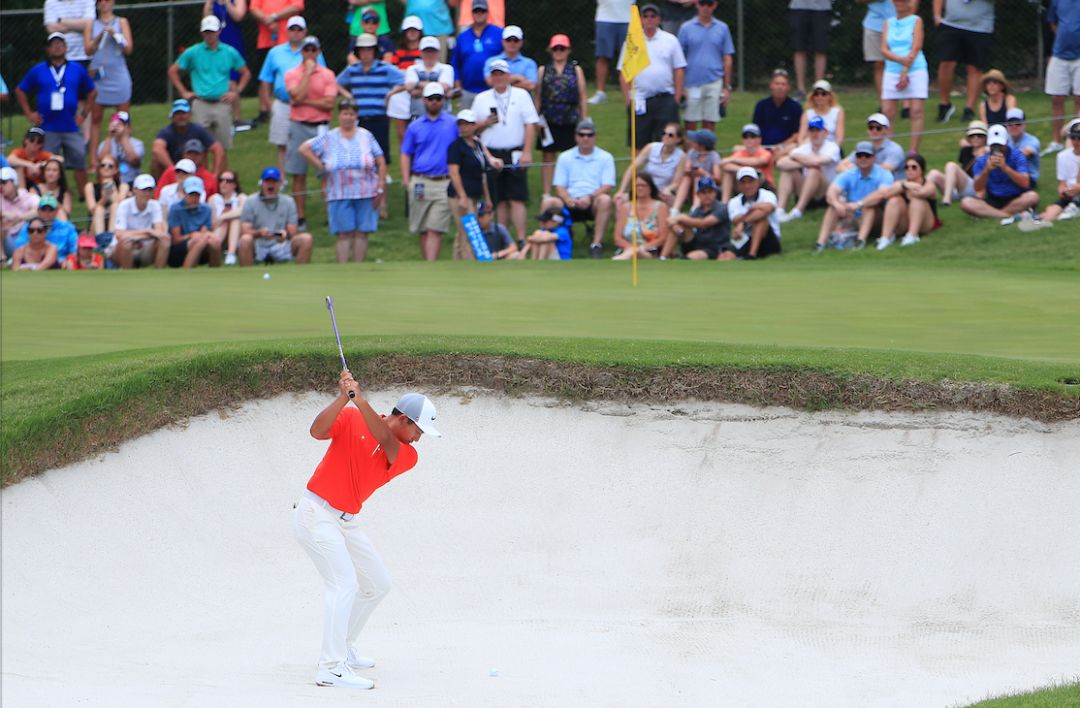 他也给自己开了一个很好的头,在第一洞就抓下小鸟——虽然开球飞进长草,第二杆又落进果岭旁沙坑,但他漂亮的沙坑救球,把球放在了旗杆边不到1英尺的地方,推进小鸟。