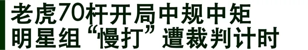 值得一提的是,老虎与布赖森·德尚博、贾斯汀·罗斯所在的这一组,还因“慢打”遭到裁判计时警告。受到影响的后两人仅打出74杆和75杆,面临晋级危机。为此老虎解释道:“暴雨后的球场很潮湿,我们与球童交流,包括互相提醒花了不少时间。我们之前的JT、小麦、斯皮思那几组打得的确很快,看上去我们就慢了一些。”