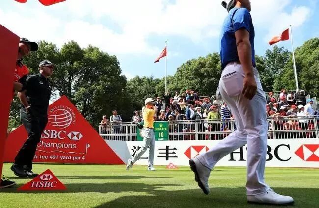2017年汇丰冠军赛开幕秀,李昊桐与松山英树同框