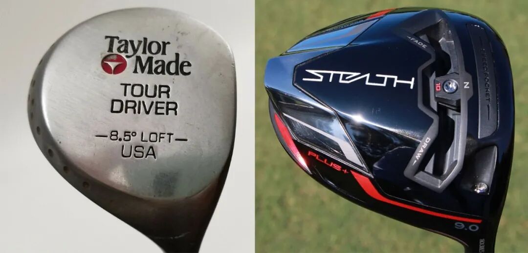 老虎美巡首秀使用的一号木,型号是TaylorMade Tour Preferred Burner Plus,与30年后的今天,他的发球杆出自于同一家厂商。Burner Plus系列球杆于上世纪80年代末90年代初推出,当时的杆头还是不锈钢材质,属于柿木杆与90年代后期钛合金之间的过渡性产品。通过下面的对比图可以看出,伍兹在1992年一号木的杆头,明显比他今天使用的Stealth Plus小很多。