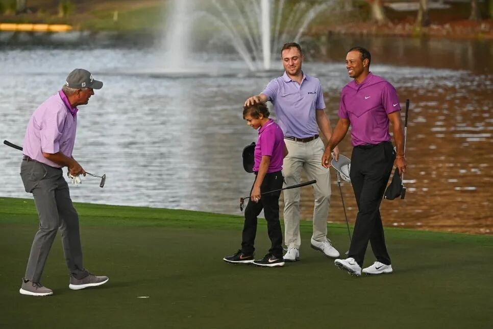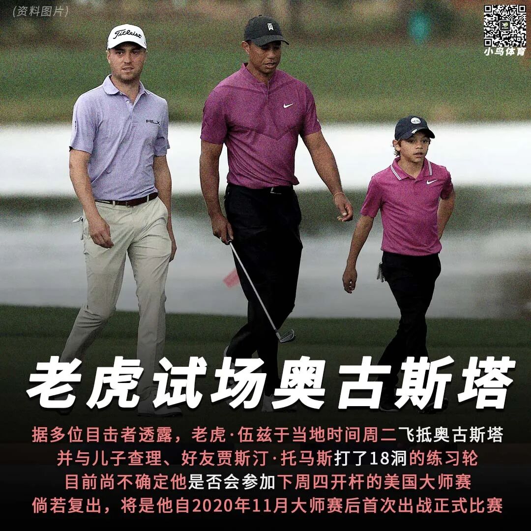 由于托马斯与伍兹在佛罗里达的住处相隔不远,让人不禁猜测,这对“好街坊”此次似乎是一道搭乘飞机来到奥古斯塔。而“伍兹+查理+JT”这个组合,在近两年的PNC父子挑战赛上也是屡见不鲜。由于伍兹最近两年只参加了这场亲子赛,托马斯与伍兹父子一道下场的情景,也成为了人们近期对于赛场上的老虎,最为深刻的记忆。