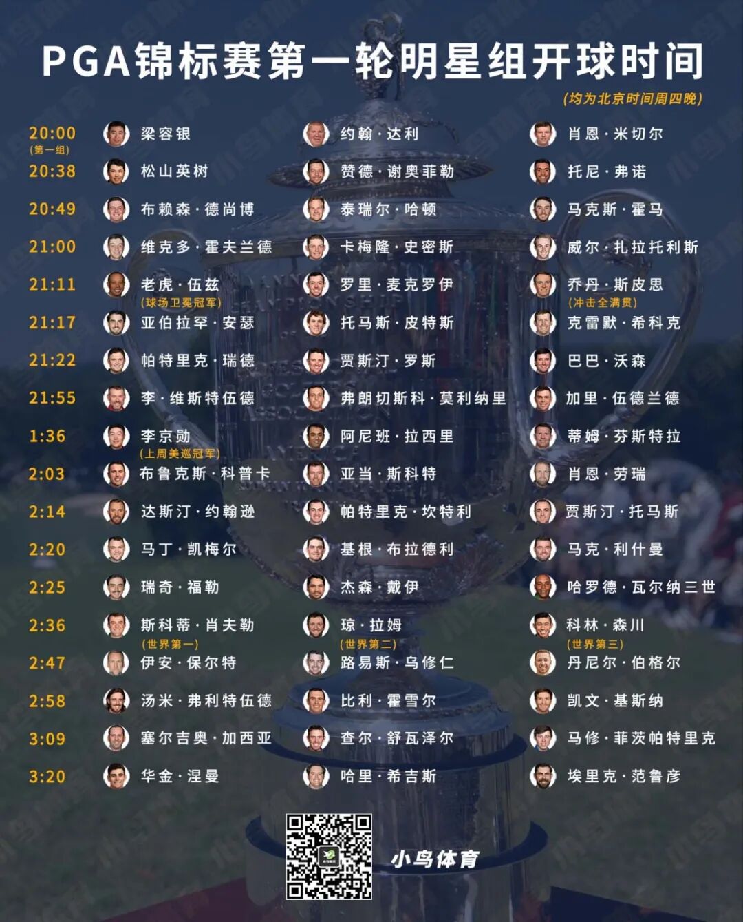 而麦克罗伊,正是老虎PGA锦标赛前两轮的同组球手,而这组另一位球手是乔丹·斯皮思!这三人共赢得了22场大满贯、115座美巡赛冠军、总计815周排名世界第一——堪称近年来四大满贯最为豪华震撼的“王炸”分组!