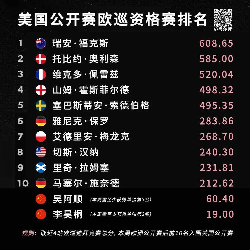 本场欧洲公开赛,也是“美国公开赛欧洲资格赛”四部曲的最后一站。周日完赛后的4站累积迪拜积分前十名,将获得两周后大满贯的参赛资格!不过前3场“未晋级-退赛-第37名”的表现,仅为李昊桐累积了19分,距离目前第10名门槛相差183.62分之多!