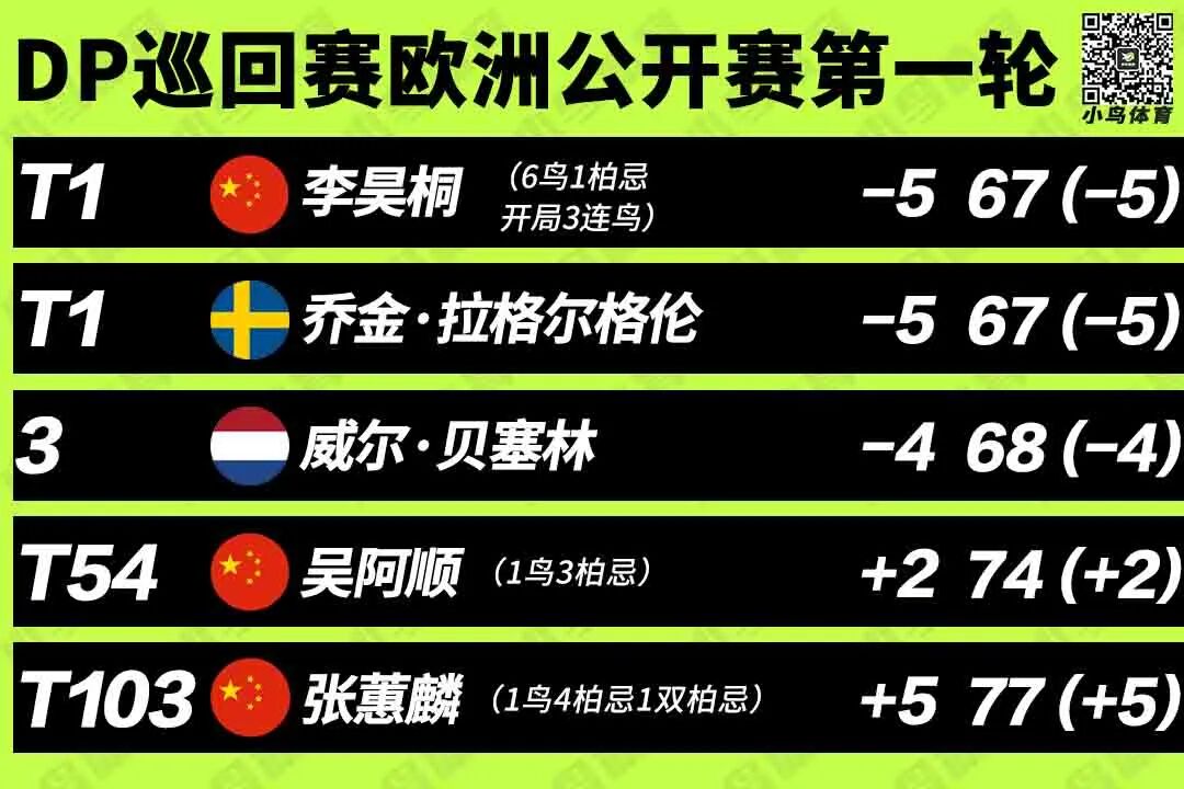 而在上周五,荷兰公开赛的第二轮比赛中,李昊桐曾以一张63杆记分卡,同样一度领跑群雄。只不过周末两轮77-75的滑坡,让他错失争冠良机,最终仅以并列第37名收官。