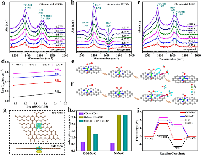 轴向O配位的Ni单原子超结构在阴极CO2RR过程中具有优异的活性,在液流池中CO的分电流密度达到325 mA cm−2@−0.6 V vs. RHE,法拉第效率高达到99%。在200 mA cm−2的大电流密度下能够保持15h以上的长时间稳定运行。