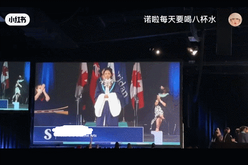 在台上的这几步,Nora走得非常端庄又谦逊有礼。抵达台前时还行了一个万福礼,完美诠释了中国传统文化。