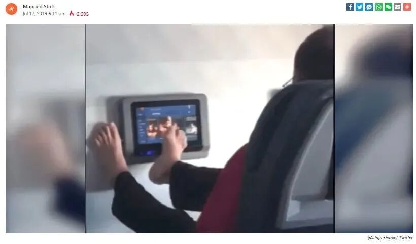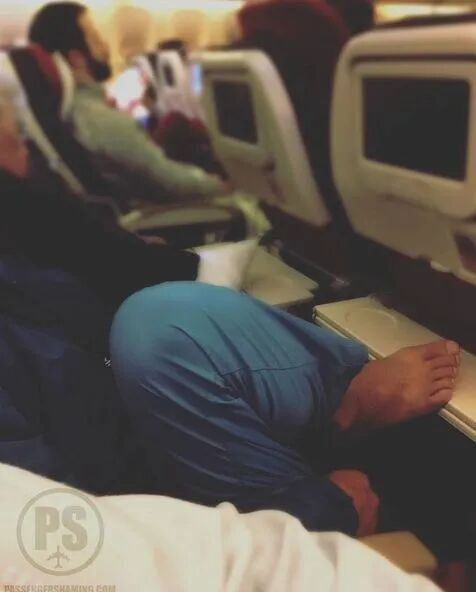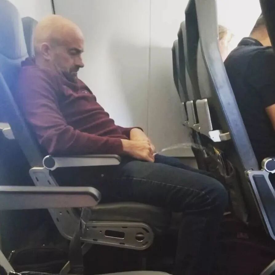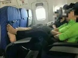 只见一名男子背靠在自己的座椅上,然后把两只脚放在前面娱乐屏的两侧。。。。