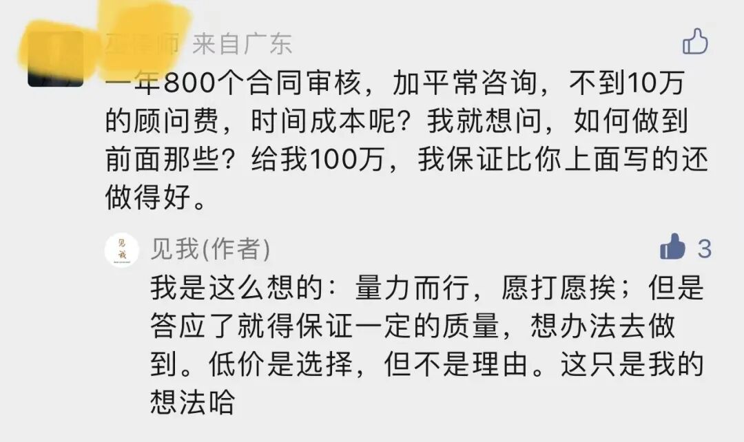但是律师朋友你们想想,有几个法务这样砍价的?