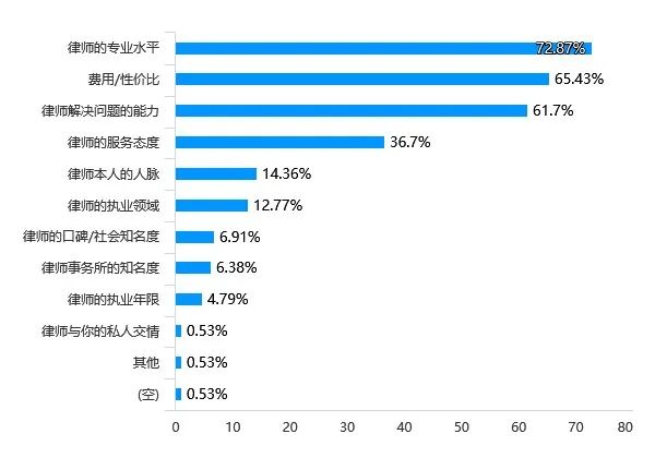 去年的调查,最令我吃惊的一个发现就是,价格并不是法务在考虑选用外部律师时的第一考虑要素。