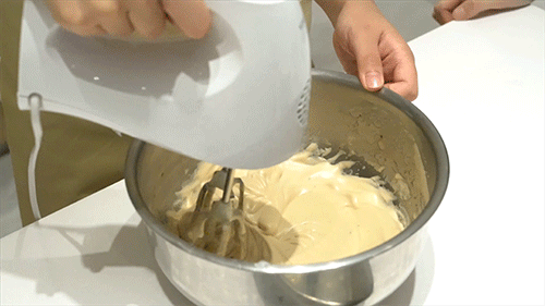 所有材料也都会由老师提前准备好,我们只需负责加料操作就好~绵白糖和紫薯粉制成的紫薯芋泥,加入顺滑的奶酪面糊后,会变成淡雅的粉紫色,美妙又治愈~下一步,把混合后的面糊送进烤箱,静候烘烤熟成就好。