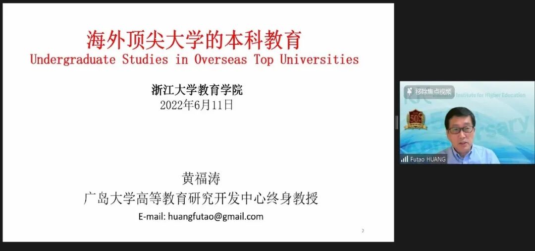 6月11日,日本广岛大学的黄福涛教授以“海外顶尖大学的本科教育”为主题作主题讲座。黄教授首先提出关于什么是一流大学的本科教育以及世界一流大学的评判标准的相关问题,而后从比较的视角分析了国内外如何建设一流本科。黄教授通过对麻省理工学院,剑桥大学等世界一流大学进行案例分析,得出研究型大学学士学位课程的相关特点。最后,黄教授从历史和比较的角度谈到了高校课程模式的趋势以及本科课程的特点,并给出相关的问题与启示。在最后的讲座互动环节,黄教授与同学们积极互动,就大家关心的一流本科课程问题进行了进一步探讨。