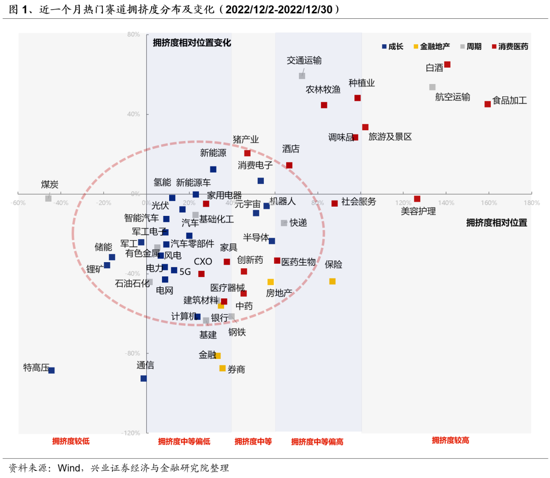 成长板块拥挤度多已降至中等偏低或较低水位,拥挤度压力显著消化。截至12月30日,悲观预期持续释放后,成长板块拥挤度已回落至历史低位。军工、信创、新能源等行业拥挤度已回落至中等偏低或较低水位,拥挤度压力显著消化。
