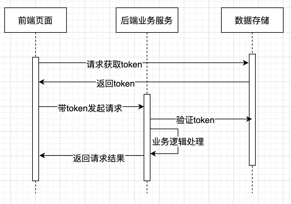 1. 前端页面提交时,页面token机制。进入页面时,从服务器获取token,在服务器端把token进行存储,提交时把token带到服务器端进行验证;常见的处理流程如下: