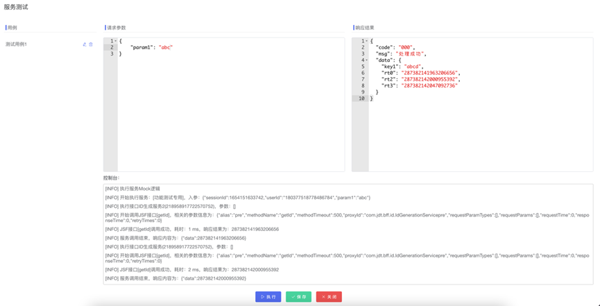 为方便研发同学根据用例自测服务,编排系统添加了接口响应Mock的功能,可根据入参进行匹配并返回特定的数据,这样研发同学就可以不依赖业务方的接口返回,自己通过数据Mock的方式完成服务的自测,从而提高研发效率。接口Mock的功能如下图所示: