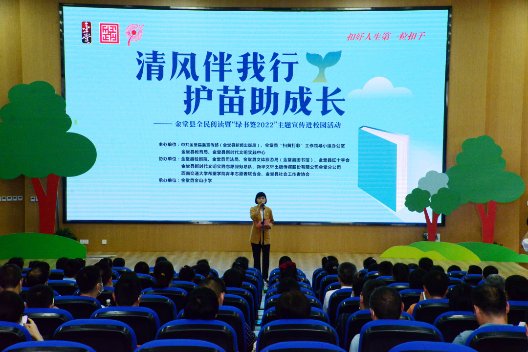 5月31日,由中共金堂县委宣传部(县新闻出版局)、金堂县“扫黄打非”工作领导小组办公室、金堂县教育局、金堂县新时代文明实践中心等联合举办的金堂县全民阅读暨“绿书签2022”主题宣传进校园活动在金山小学圆满举行。