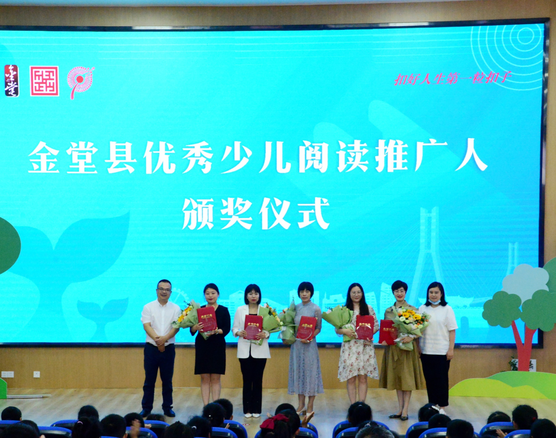 活动表彰了符倩雯等5名致力于“书香金堂”“书香校园”建设的优秀少儿阅读推广志愿者,文以衡等4名荣获2021年省市“我的书屋·我的梦”农村少年儿童阅读实践活动优秀奖的师生。