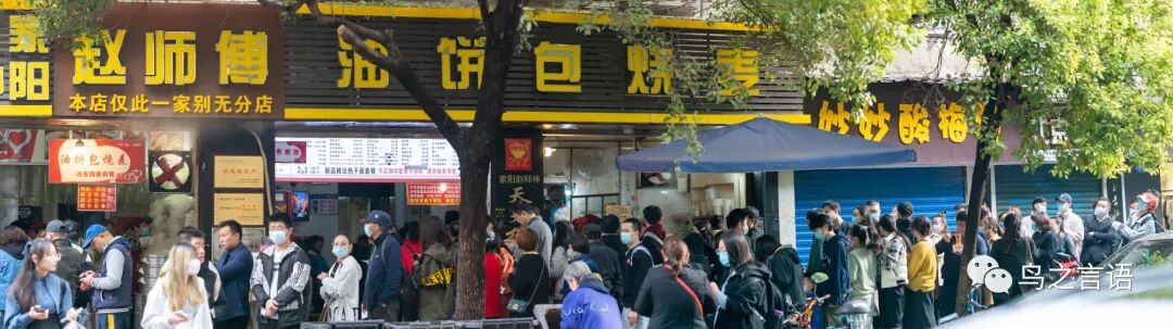 在赵师傅过早有一个不同,需要先去收一台买票,然后去领餐台「凭票兑换」,因此建议两个人分工合作。幸好来早了几分钟,在吃完走出来的时候,队伍已经排到了后面几间店铺那儿。