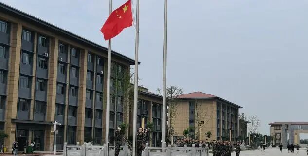 《义勇军进行曲》奏响,国旗护卫队队员踏着整齐的步伐而来,护卫着鲜艳的五星红旗缓缓入场。国歌声雄壮、激昂,全场的气氛被国歌所感染,庄严肃穆。在全体成员庄严的注目下,伴着国歌,五星红旗冉冉升起。全体师生肃立注目,奏唱国歌。