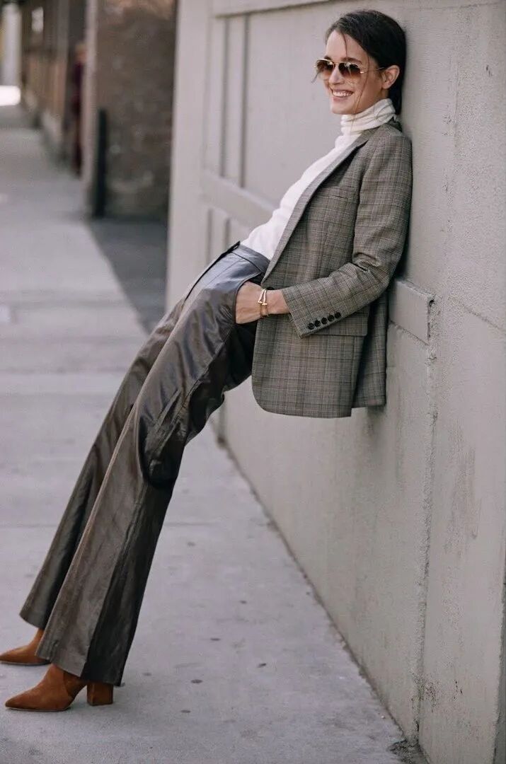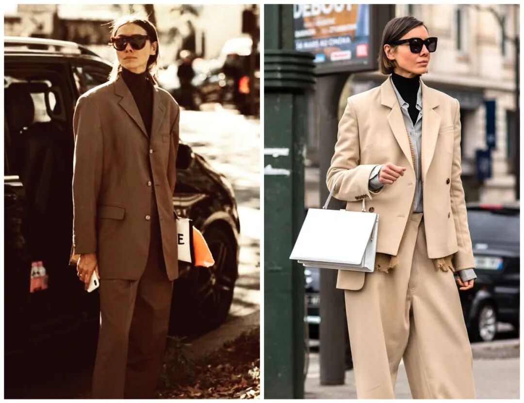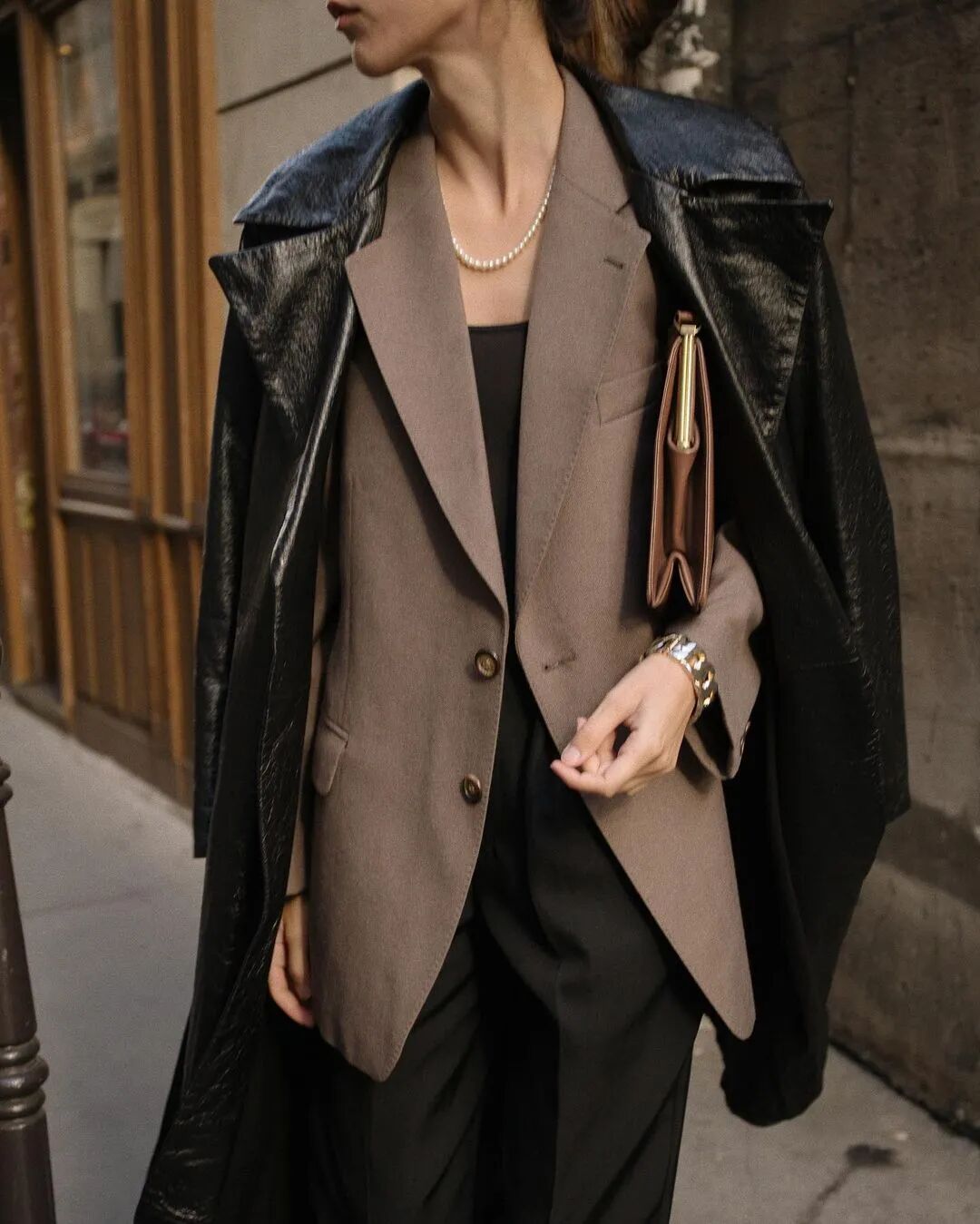 我一开始会觉得西装+阔腿裤放在0-10度可能还是会有点冷,不过问了在北方生活过的助理小妞,她说身边有挺多人冬天都会这么穿的,只是穿了不会在外面待很久哈哈。注意,这个组合如果把握不好的话,还蛮容易像老干部的。她们算是已经穿得很时髦了,但这种配色和款式的选择其实挺挑人的。▼可以选露肤面积大的内搭,增加清爽值,像杨采钰这样,内搭是Alexander Wang的小爆款毛衣。不过这种会更适合温度更高地区的南方朋友▼对比一下,超爱穿西装的波兰Vogue主编Julie Pelipas,在高领中间加一件衬衫后,整体造型丰富很多~▼另一个就是把裤子换成更休闲或者更有设计感的,起到解闷赶走老气的效果。这种带开衩设计的西装裤,也会比普通裤子时髦一些。对比一下。▼这组搭配是被从小就在北方生活过的助理小妞们亲测过“包不冷”的时髦搭配,如果西装是毛呢厚款的话会更暖,0度穿都不会冷的那种。这组搭配在街拍中也非常火,可以找到很多美图。明明裹得严严实实,但因为有层次感,也会显得很时髦。我在南方还没什么机会这样穿,下次出差也想试试~▼想穿好看它,首先外套得够宽松,给西装外套足够的容身空间。▼搭配上要注意松紧结合,外面宽松,里面就要选稍微修身一点的。对比一下,左边看起来就没那么利落了。▼颜色的搭配上,可以多尝试同色系搭配,一深一浅突出层次感。冬天最适合把各种大地色系单品搭在一起了。▼想穿得更有趣,可以试试把最里面的内搭换成亮色,点亮全身~▼材质完全不同的单品混搭在一起也能有不一样的感觉。可以试试西装混搭毛毛外套,面料一软一硬,看着温暖又精神。▼今年流行的皮质单品也能来混搭一下,不管是套在外面还是穿在里面,都能给穿搭增添一丝帅气~▼好了,今天就到这里,明天就试试其中的一组搭配吧,期待你们来后台交作业~昨天当了一回“居家卡”(戳这里温习),评论区和后台简直炸掉了——全是求链接的。我还有朋友专门发微信调侃我“原来你还是个家务小能手,我一个天天做家务的人知道得还没你多!”,哈哈。惭愧啊。其实并不是因为我多勤劳,而是买买买的兴趣领域实在太广了