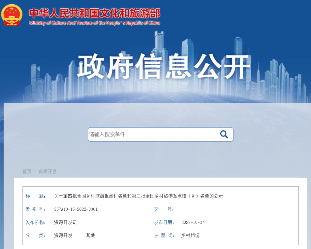 关于第四批全国乡村旅游重点村名单和第二批全国乡村旅游重点镇(乡)名单的公示