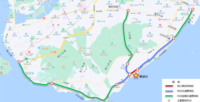 活动管制期间,环岛路管制路段沿线公共停车场将全部关闭,特别强调环岛干道沿线绝对禁止车辆停放,22日上午8时起,交警部门就将开始全线清除违停车辆,其中也包括房车,以保证焰火燃放活动期间的道路通行。
