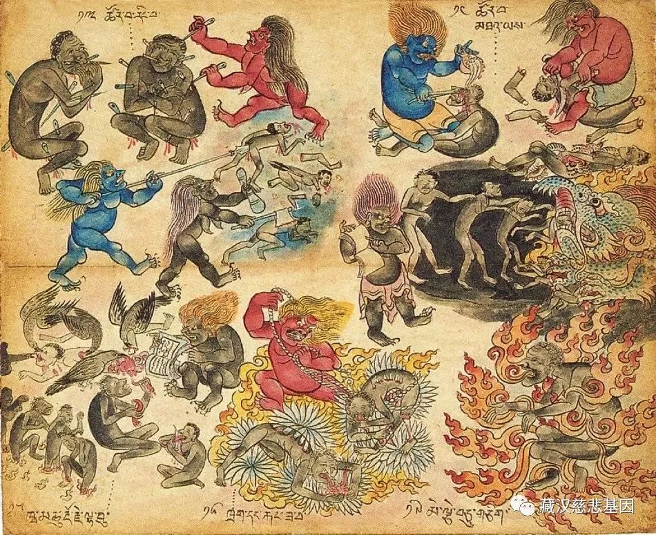 ཚ་དམྱལ་བརྒྱད་དང་། གྲང་དམྱལ་བརྒྱད། ཉི་ཚེ་བ།