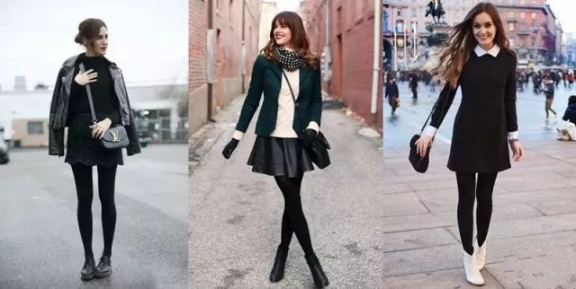 黑色百搭又显瘦,不论你选择什么样的裙装,搭配黑色打底裤基本上不会出错。