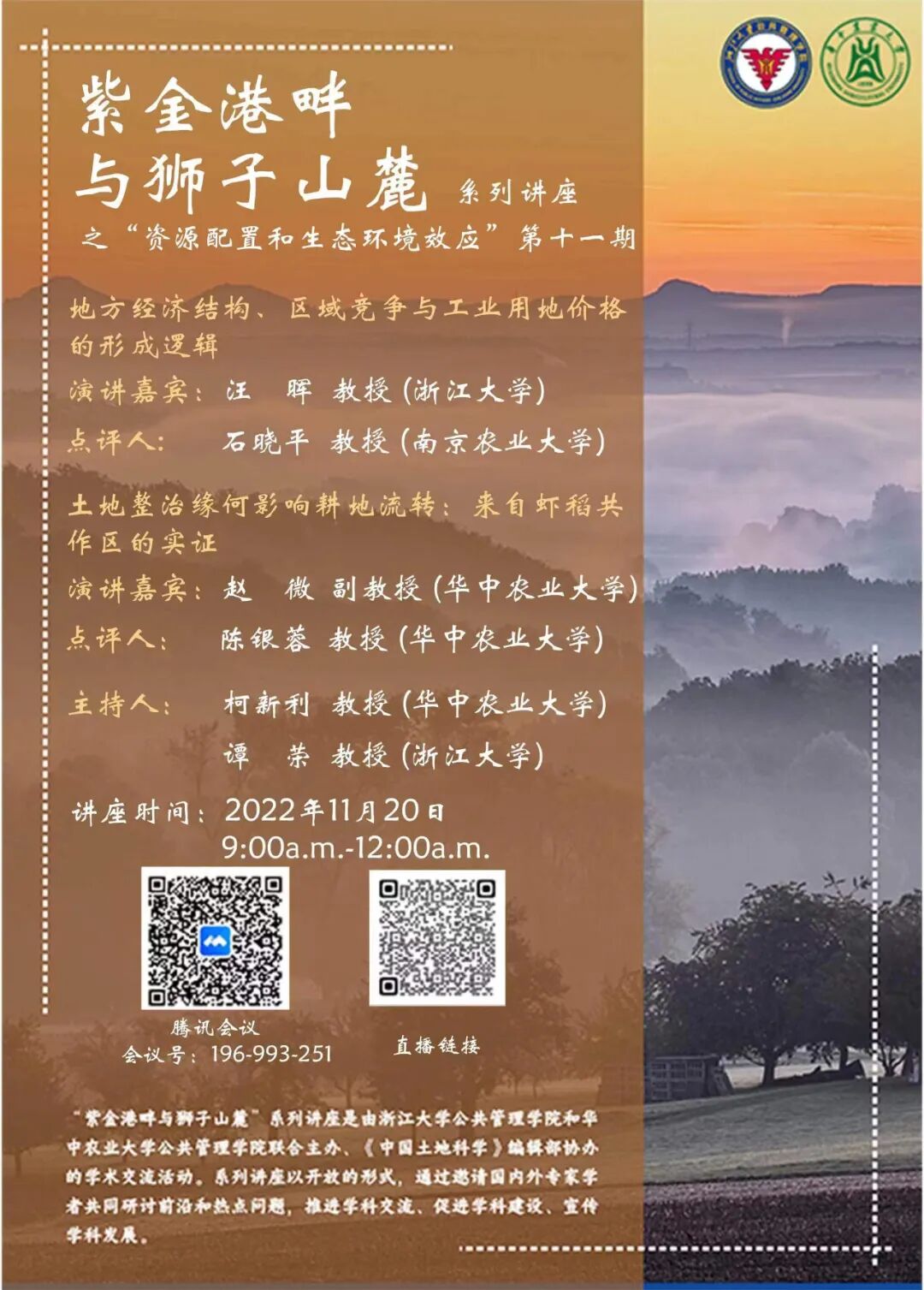 “紫金港畔与狮子山麓”系列讲座是由浙江大学公共管理学院和华中农业大学公共管理学院联合主办、《中国土地科学》编辑部协办的学术交流活动。系列讲座以开放的形式,通过邀请国内外专家学者共同研讨前沿和热点问题,推进学科交流、促进学科建设、宣传学科发展。