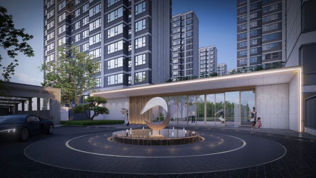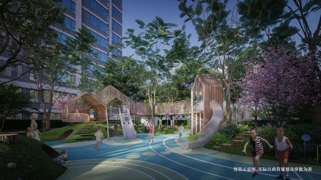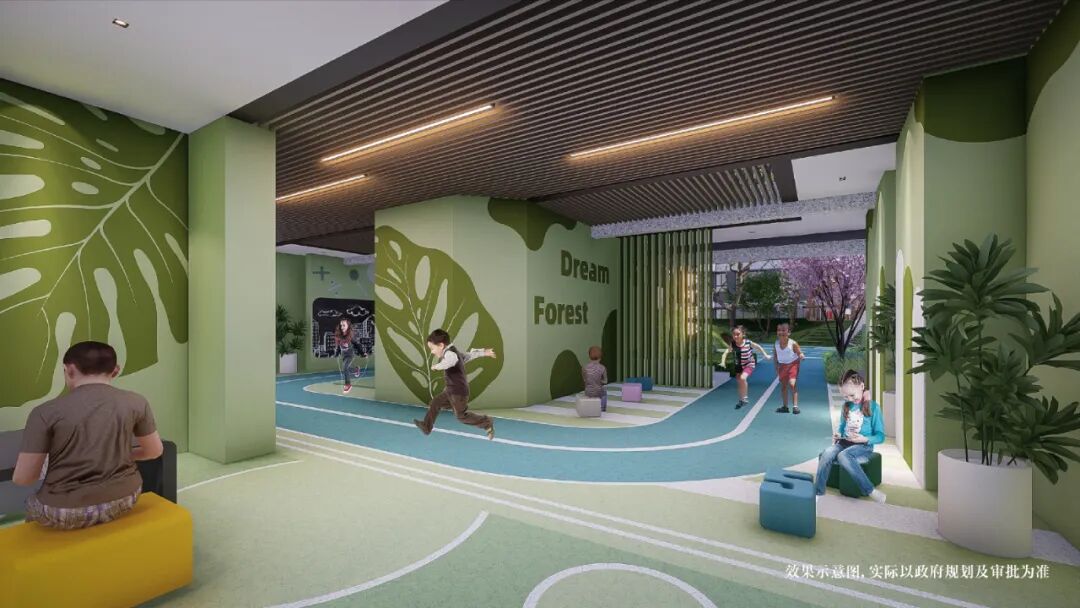 星空顶地库坡道效果示意图除了星空顶地库坡道,南入口还有水幕景墙和仪式树阵组成的礼仪庭院,聆听涓涓流水,感受树荫下的光影浮动,尽享归家的欢迎仪式。北入口是设计更简洁雅致的次入口,两侧有精致的景墙,还有樱花与榉树组成的约14m双侧林荫道,树影婆娑再加上迎宾景墙,带给业主美好的归家体验。整个社区景观方面,通过六大分区打造自由、自然、自如的日常氛围:林隐归家景致:打造颇具归属感的多层次序列空间,港湾式落客空间、艺术品中心环岛、酒店式社区大堂、迎宾水景幕墙、礼仪树阵等归家景致。自然香樟步道:延续入口香樟氛围,同时采取置石小景、草坪以类花境的种植手法,营造鸟语花香的居住环境。森系中央会客厅:乌桕与核心会客厅,共同打造一座会呼吸的森林客厅。阳光活力大草坪:清新明快的归家路径,榉树与活力大草坪营造出自然的氛围,为业主打造定制化的健康环境。森林主题探险乐园:以“森林探险”为设计灵感,在社区打造专属儿童主题乐园,设置儿童跑道、趣味攀爬、家长看护等多个互动设施。定制多龄宅间花园:在宅间定制多类型多年龄段活动空间,设置康体锻炼区、户外球场等丰富有趣的综合活动场地。另外,社区内部还有4大邻里空间,打造亲子活动、运动健身、静谧休闲、优雅聚会,满足全龄层的休闲生活与情感社交需求。