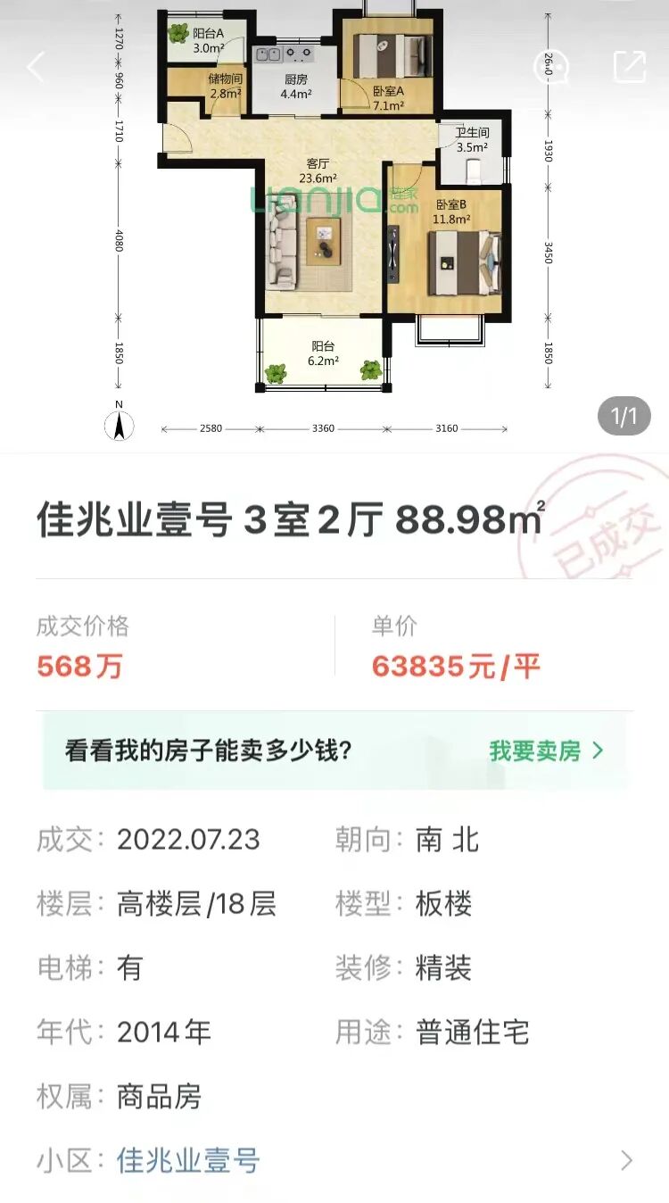 建面约134平3房