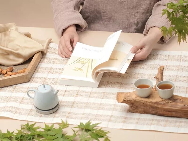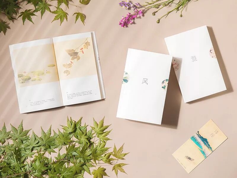一并收纳在素色函套中,边角处花草图样点缀,有着返璞归真的淡雅。