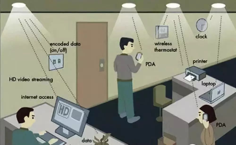 通过给普通的LED灯加装微芯片,就能使LED灯以极快的速度闪烁,从而利用LED灯发送数据!这也便是可见光通信技术的主要原理!