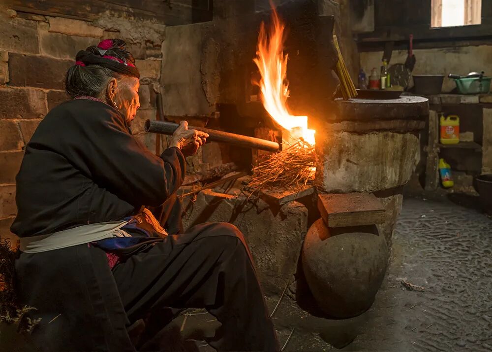 我们家的灶间在堂屋东南的拐角,旁边是朝东的一个小窗户。两口锅,里面的是小锅,外面的是大锅,两口锅并排,靠近的上方多出一个近似的三角形台面,正好安上了一个炉子。炉子里盛了水,只要烧锅,炉子水就热了,用来洗脸洗脚,省了烧水的柴火。很长一段时间,里面的小锅不怎么用,因为没有要炒的菜。而且烧小锅需要草,易燃的草。不像大锅,对柴火的要求不高,草末,稻糠、花生壳、甚至煤,都能烧着。那时我家常常从粮站买稻糠回来烧锅,开始是五角钱一百斤,后来涨到一元钱一百斤。大锅的边上对着灶洞的地方有一张狗皮,狗皮的一头用一块青石压着,烧火时,一只手搭着狗皮扇风,“吧嗒,吧嗒”,大概相当于风箱的作用吧。另一只手往灶洞里投撒柴火。大锅是烧饭做主食的,如果菜是主食的话,也是在大锅煮的。
