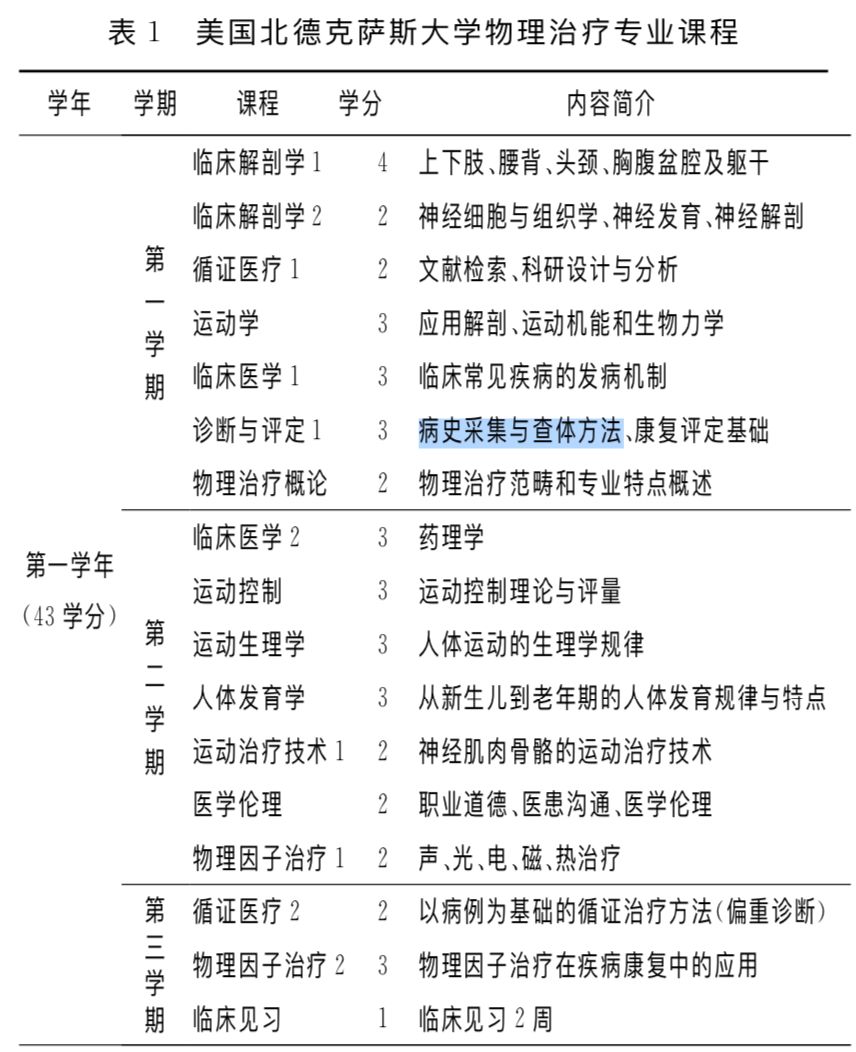 ■ 美国北德克萨斯大学物理治疗专业第一学年的课程