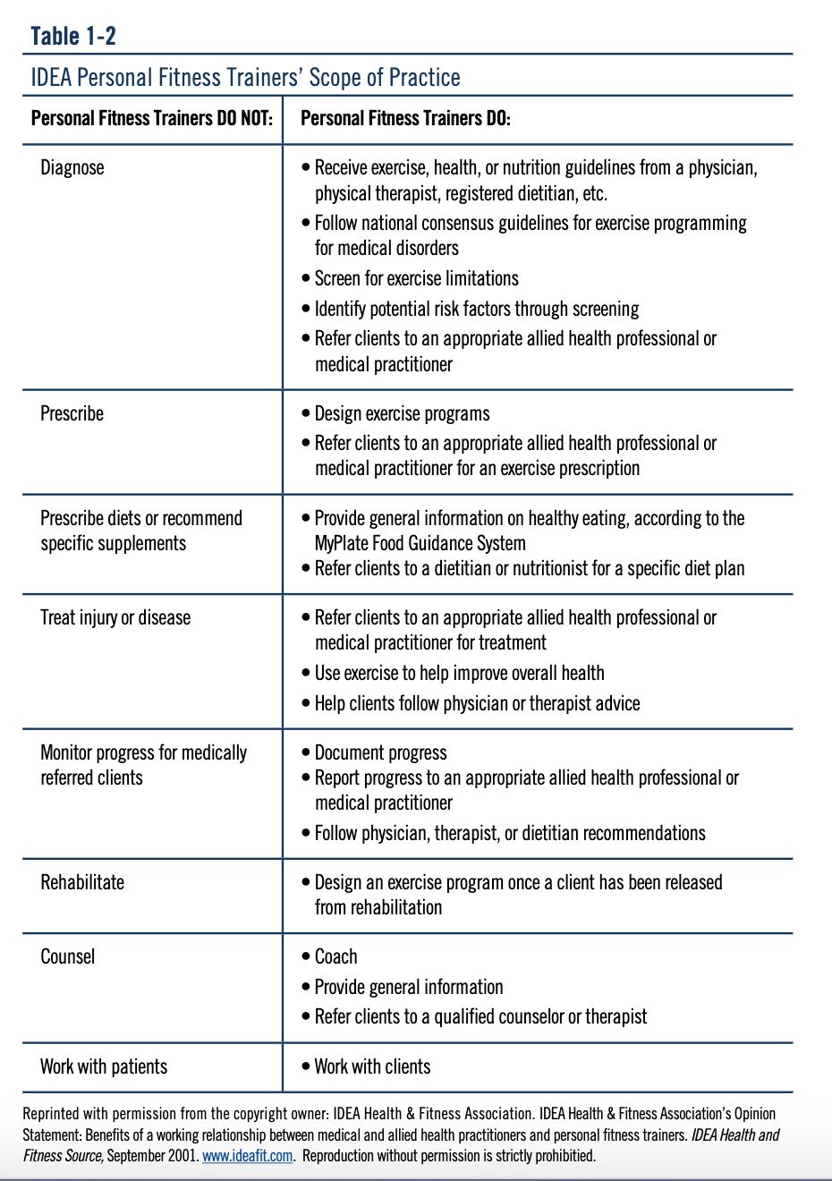 ■ IDEA Personal Fitness Trainers’ Scope of Practic