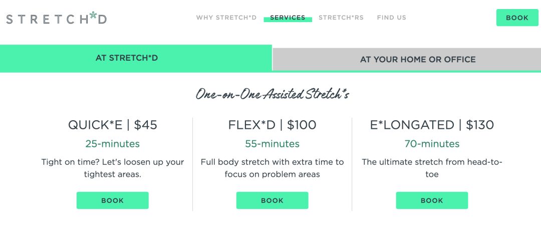 根据连锁拉伸工作室Stretch*D官网显示,55分钟的全身被动拉伸售价为100美元,对比来说,Equinox的Tier1系列私教课程为110美元,而Stretch*D的门店平均面积不超过120平方米。