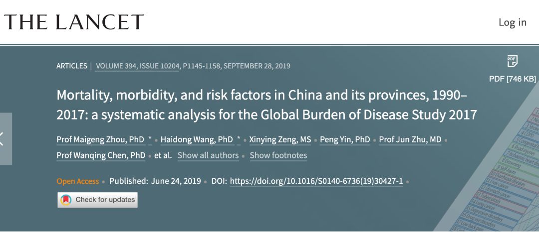 ■ 《1990-2017年中国及其他省份的死亡率,发病率和危险因素统计分析》