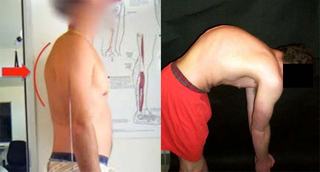 举个例子,常见的胸椎后凸畸形导致的「圆肩驼背」包括: