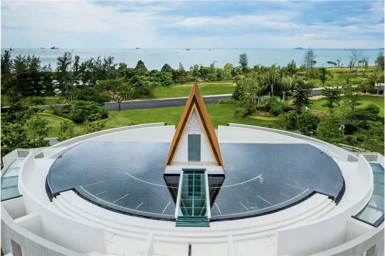 从高空俯视蒂夕思礼堂,仿佛置身于时针的圆盘中,沿着透明玻璃走道步入礼堂,它将给你旋转180°的惊喜。