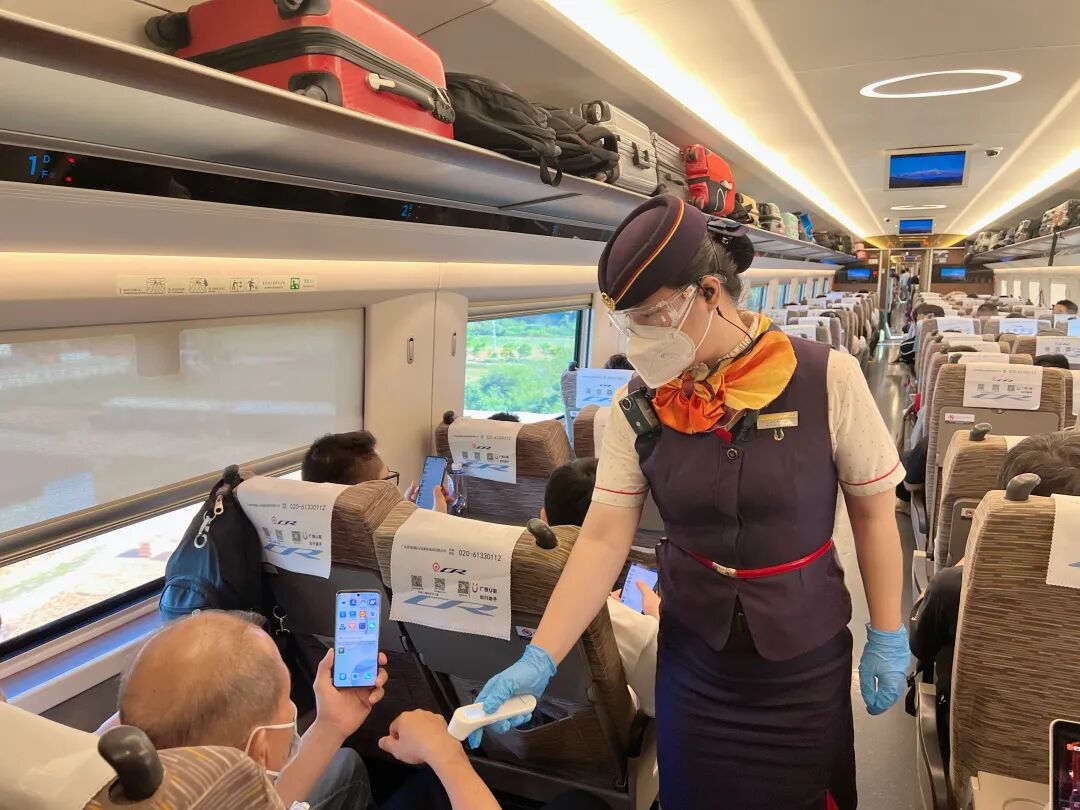 “国庆节期间旅客较多,大家一定要认真巡视车厢,保证旅客安全……”10月1日6时,广九客运段列车长高然就已做好出乘准备。当天,她值乘深圳北开往武汉的G2710次列车。