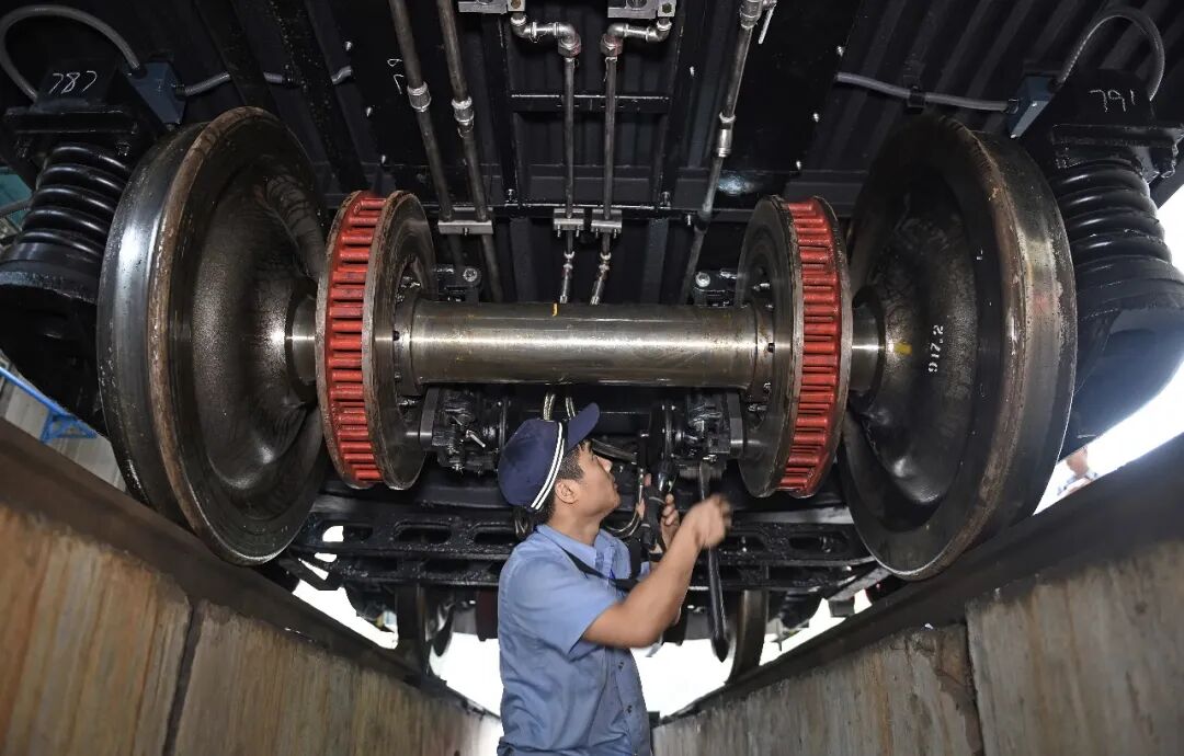 他穿梭于股道间、地沟里,弯腰、弓步、钻车底,用检车锤敲击零配件。“眼到、锤到、电筒到、心到,四点一线,才能让隐患无处遁形。”陈强介绍自己的工作。