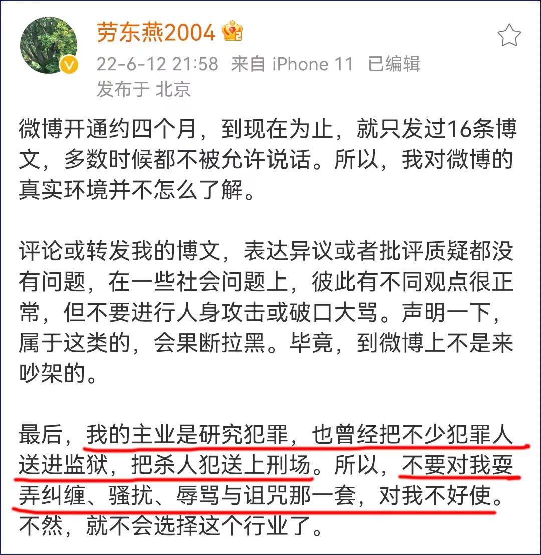 因为这一番感慨,劳东燕教授就犯了众怒了,戳了很多人的肺管子了。