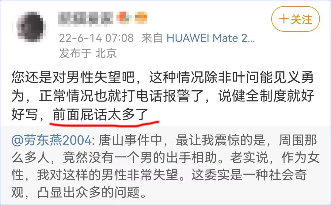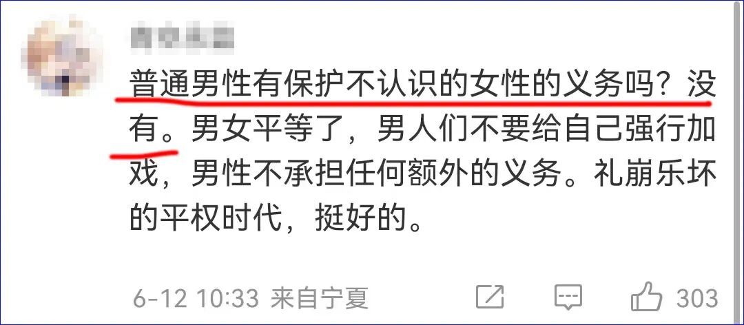 在当时的情况下,不出手相助可以理解,但非要表明不出手有多么正确多么合理,就挺可悲的。 引用一位朋友说的:“哪儿那么多废话,不就是男性荷尔蒙不足。”