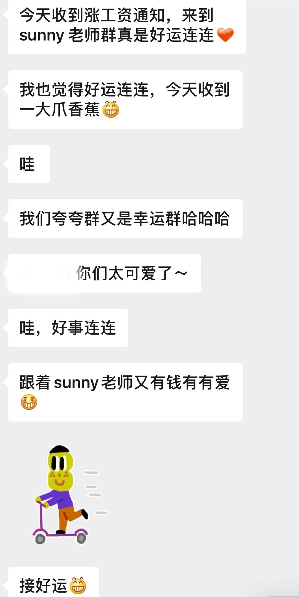 还有人说自从来了夸夸群,好运连连,开始升职加薪哈哈哈!这位集美,夸张了啊!:)