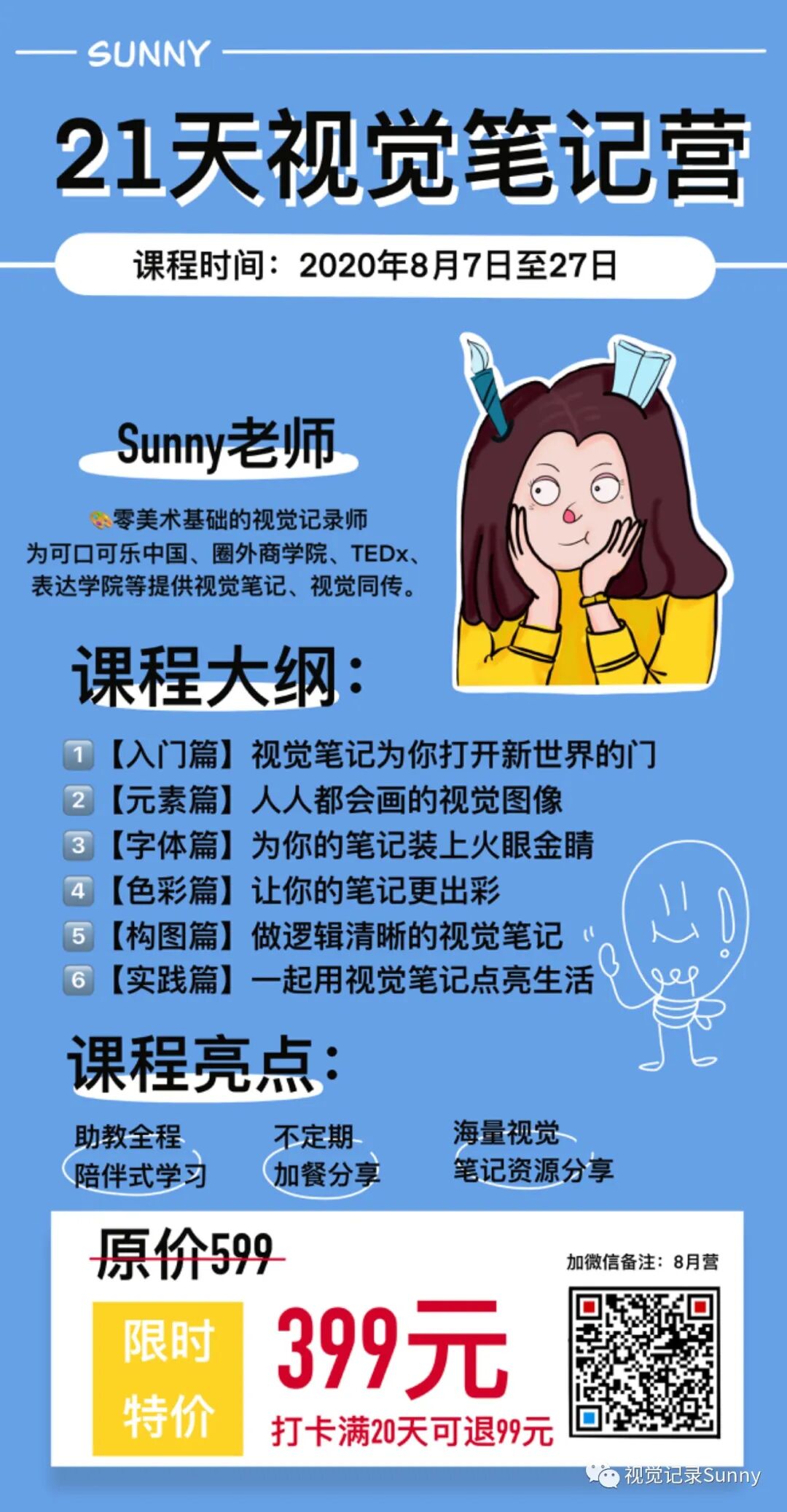 如果你也想学会这项技能,欢迎加入Sunny的8月视觉笔记营。